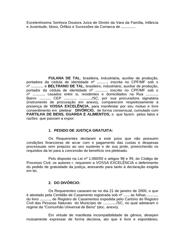 Por celeridade da Justiça, r. requerem os Divorciando que seja