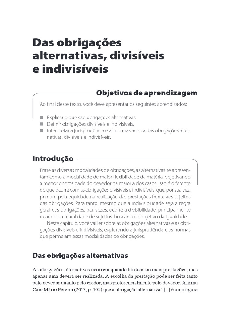 Das obrigações alternativas, divisíveis e indivisíveis 3