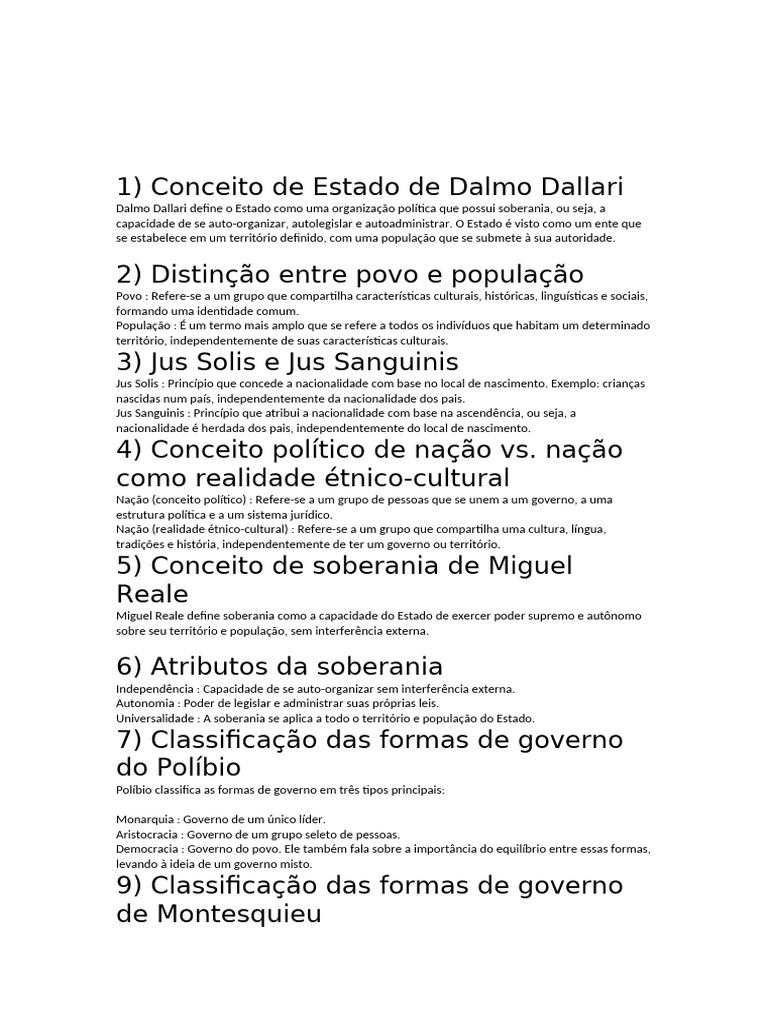 Dalmo Dallari define o Estado como uma organização política que possui soberania, ou seja, a