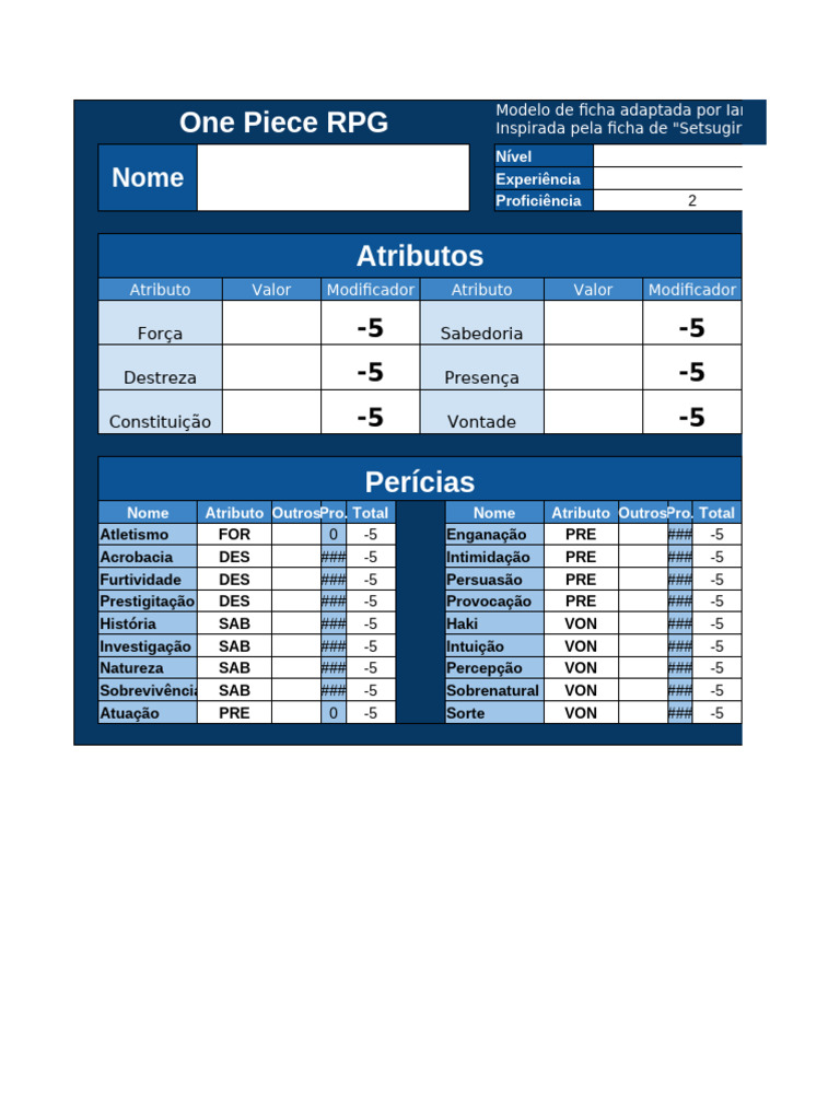 One Piece RPG Inspirada pela ficha de "Setsugiri" - Feiticeiros