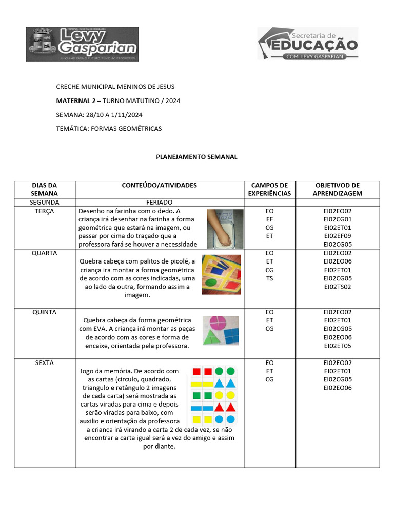 DIAS DA CONTEÚDO/ATIVIDADES CAMPOS DE OBJETIVOD DE