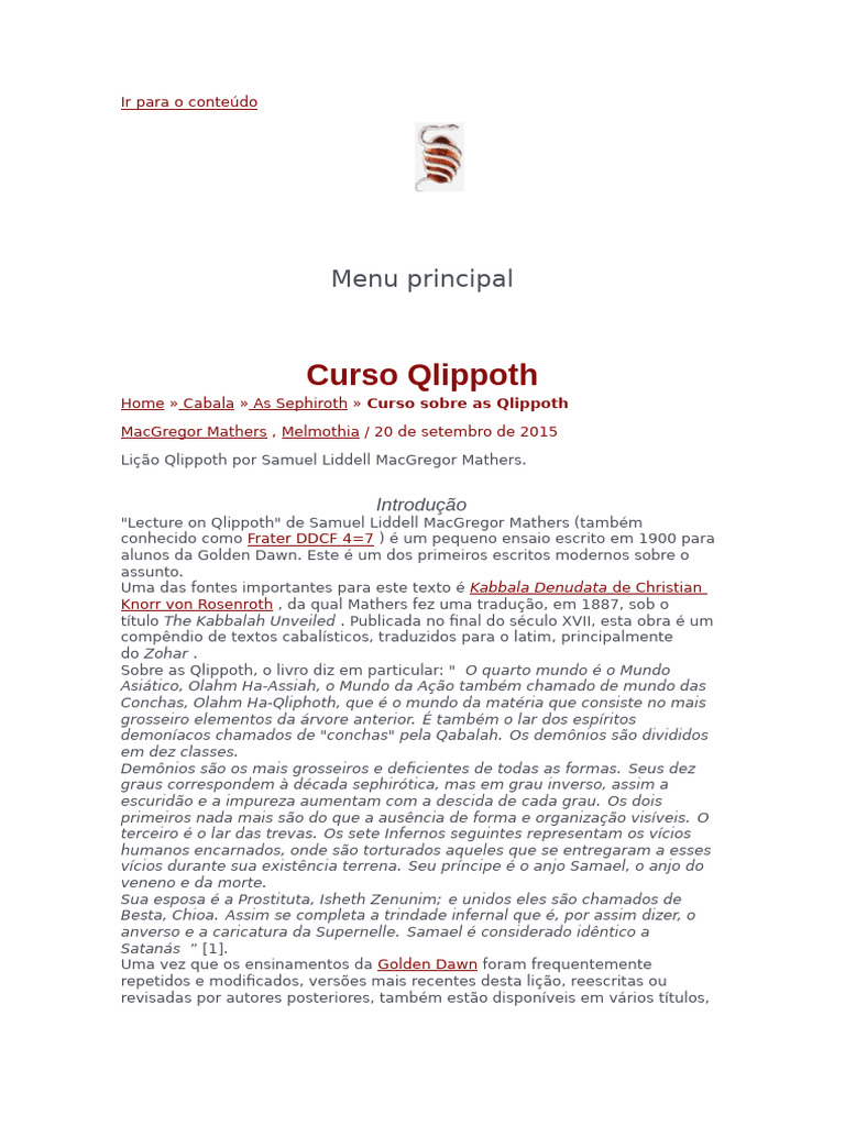 Lição Qlippoth por Samuel Liddell MacGregor Mathers.
