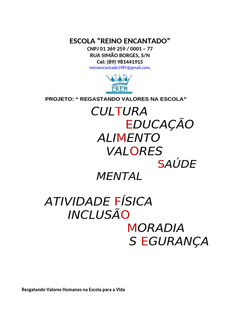 PROJETO: “ REGASTANDO VALORES NA ESCOLA”