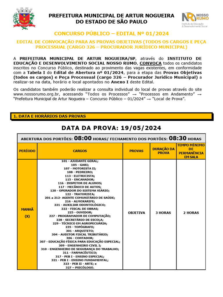 188 26/03/2000 316 EDERALDO 335 13167-518 Artur Nogueira SP 212 19/05/2024 13H30 14H00