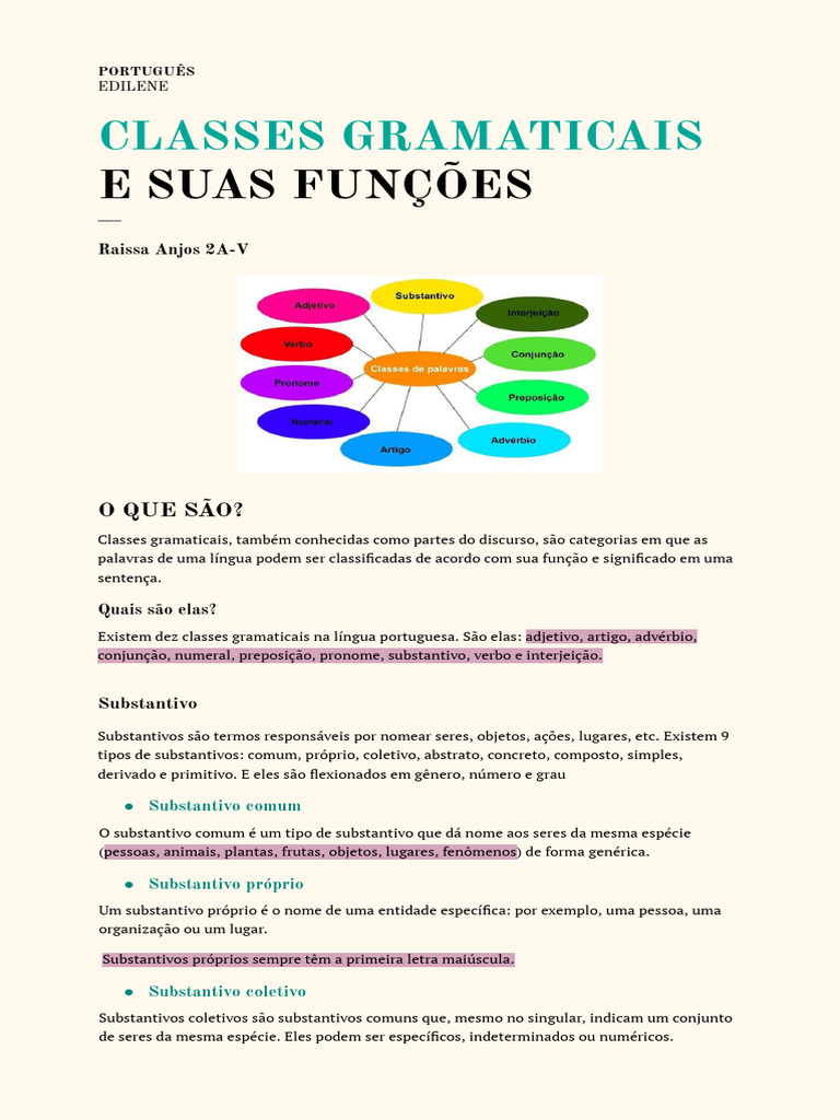 Classes gramaticais, também conhecidas como partes do discurso, são categorias em que as
