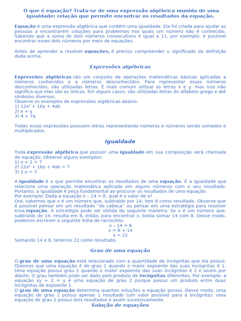 Antes de aprender a resolver equações, é preciso compreender o significado da definição