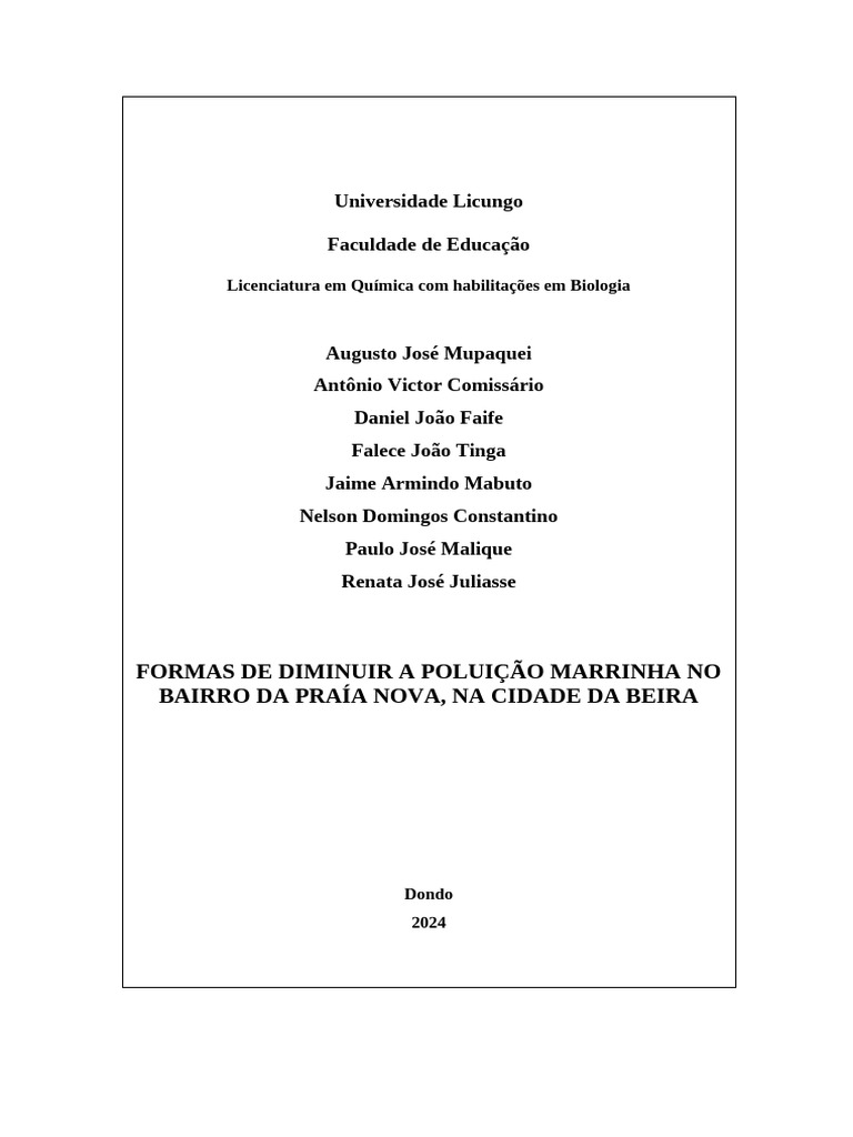 Na cidade da beira, concretamente no bairro da praia-nova temos notado muita poluição