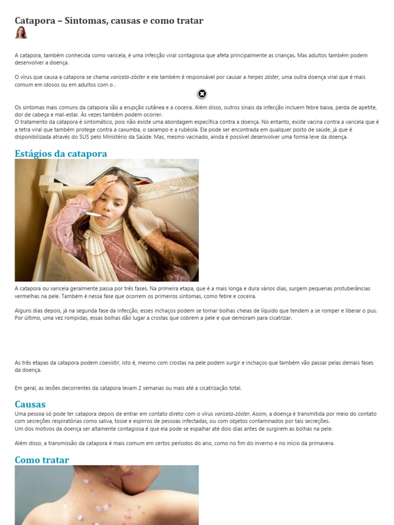 As três etapas da catapora podem coexistir, isto é, mesmo com crostas na pele podem surgir e inchaços que também vão passar pelas demais fases