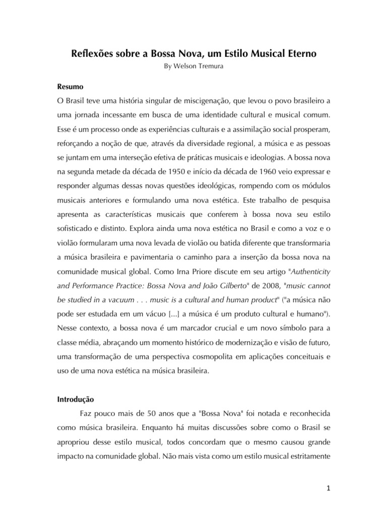 "The Significance of Bossa Nova as a Brazilian Popular Music" de 1982, afirma: