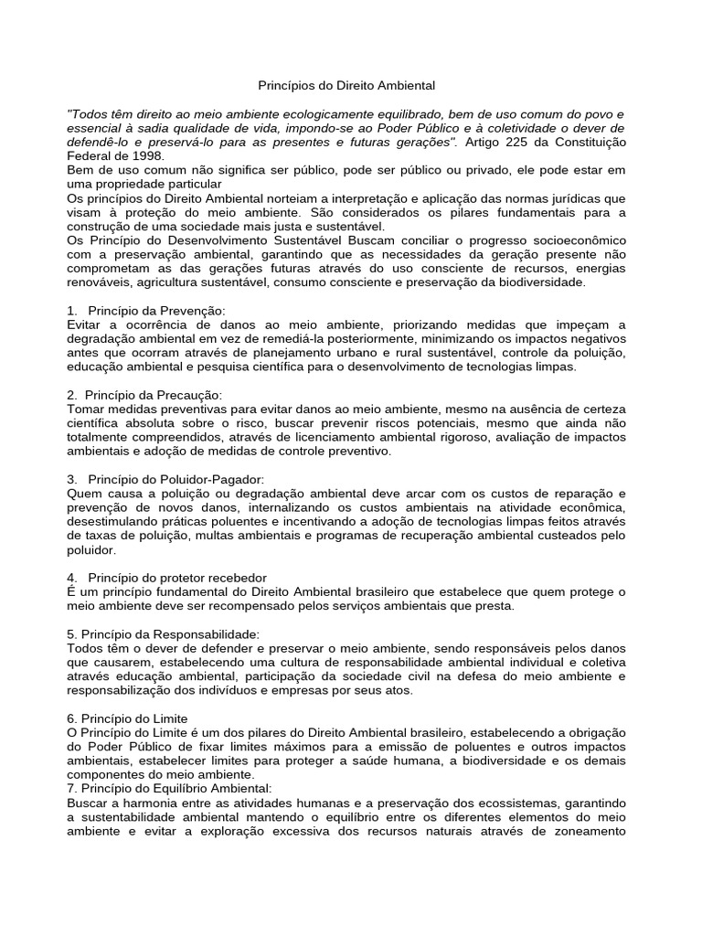 O Princípio do Limite é um dos pilares do Direito Ambiental brasileiro, estabelecendo a obrigação