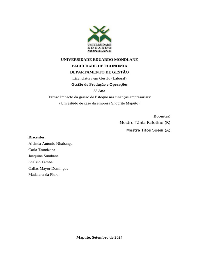 (Um estudo de caso da empresa Shoprite Maputo)