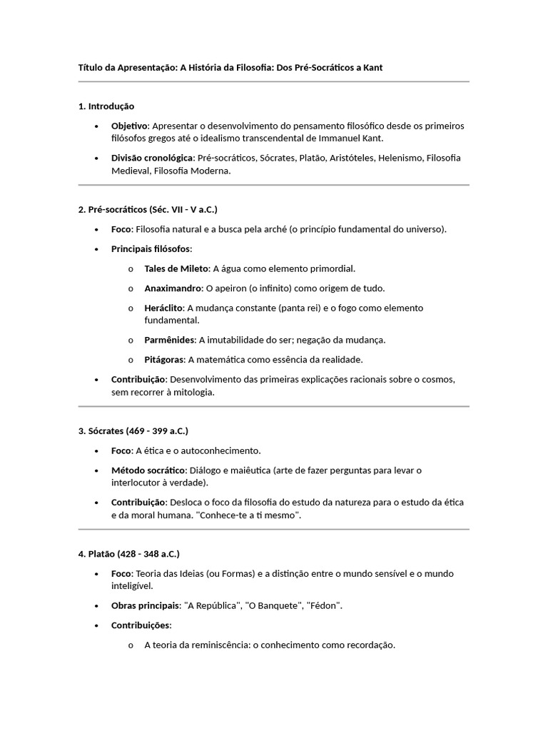 Título da Apresentação: A História da Filosofia: Dos Pré-Socráticos a Kant
