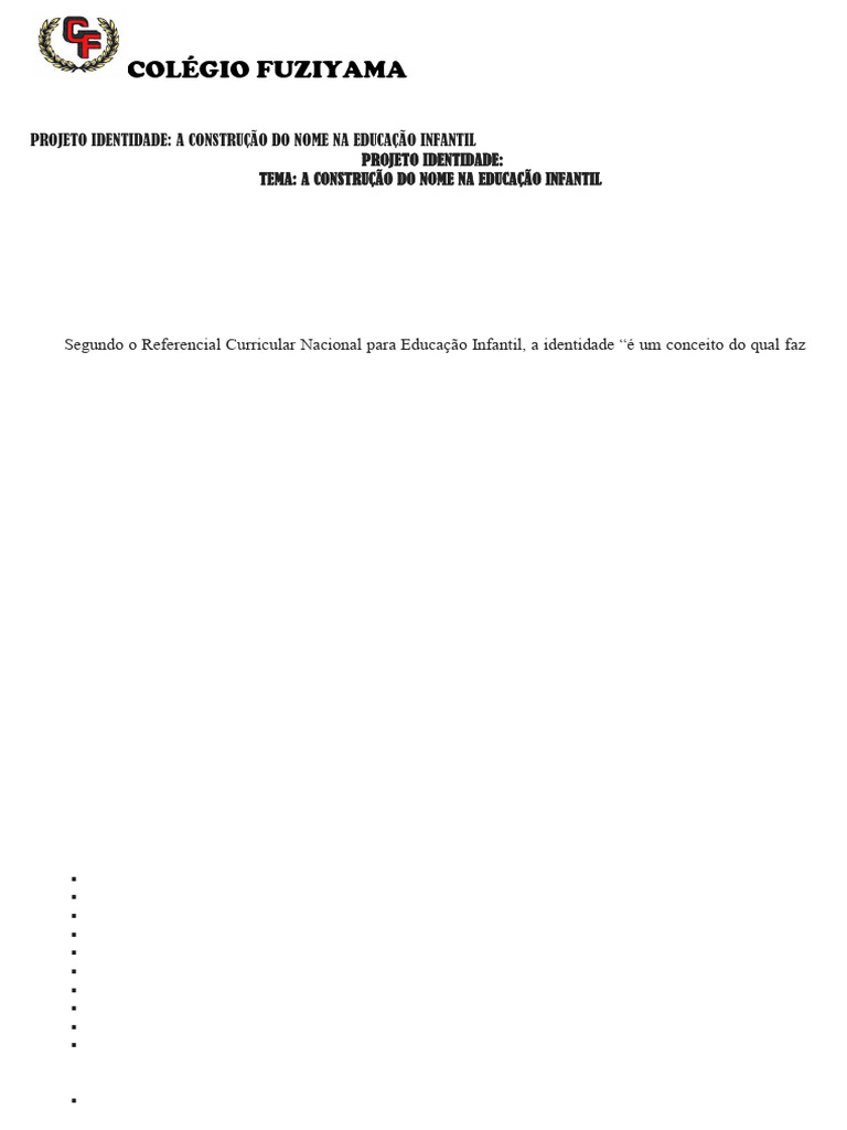 PROJETO IDENTIDADE: A CONSTRUÇÃO DO NOME NA EDUCAÇÃO INFANTIL