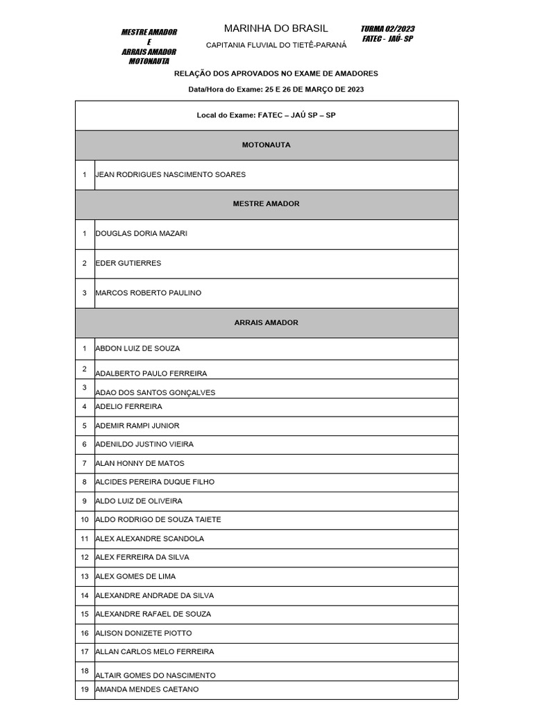 MESTRE AMADOR MARINHA DO BRASIL TURMA 02/2023