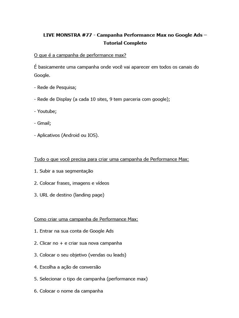 LIVE MONSTRA #77 - Campanha Performance Max no Google Ads –