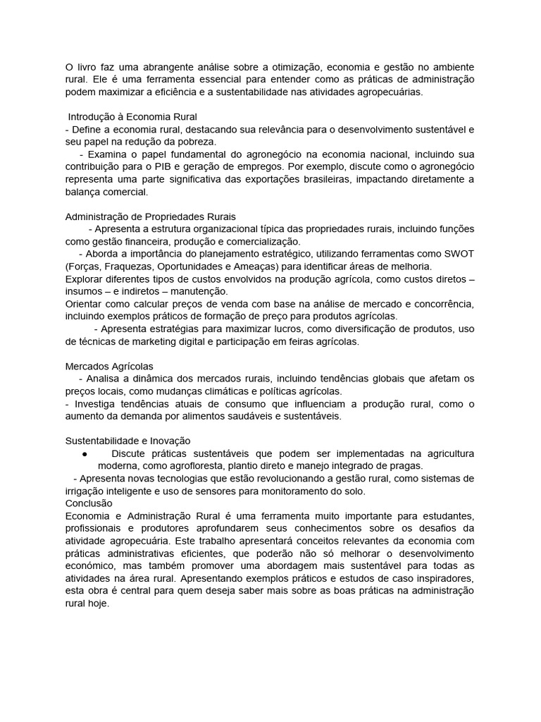 rural. Ele é uma ferramenta essencial para entender como as práticas de administração