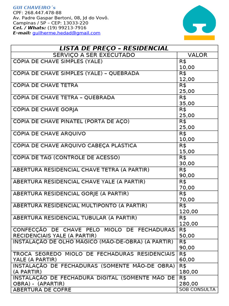 TROCA SEGREDO MIOLO DE FECHADURAS RESIDENCIAIS R$