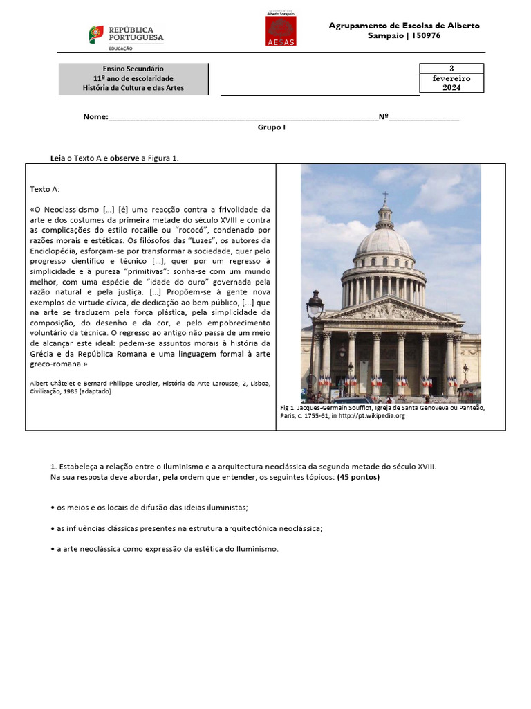 1. Estabeleça a relação entre o Iluminismo e a arquitectura neoclássica da segunda metade do século XVIII.