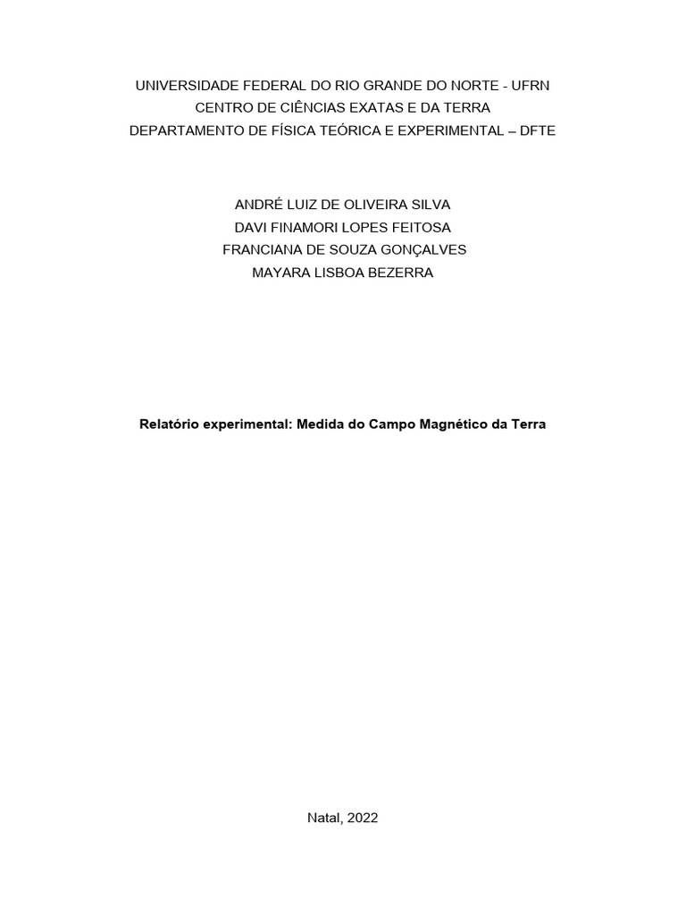 magnético terrestre – exemplo o qual será estudado neste experimento.