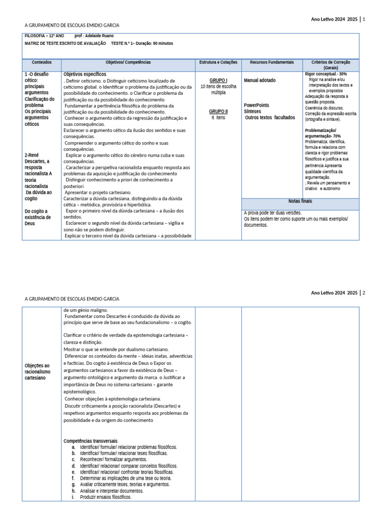 cético: . Definir ceticismo. o Distinguir ceticismo localizado de GRUPO I Manual adotado Rigor na análise e/ou