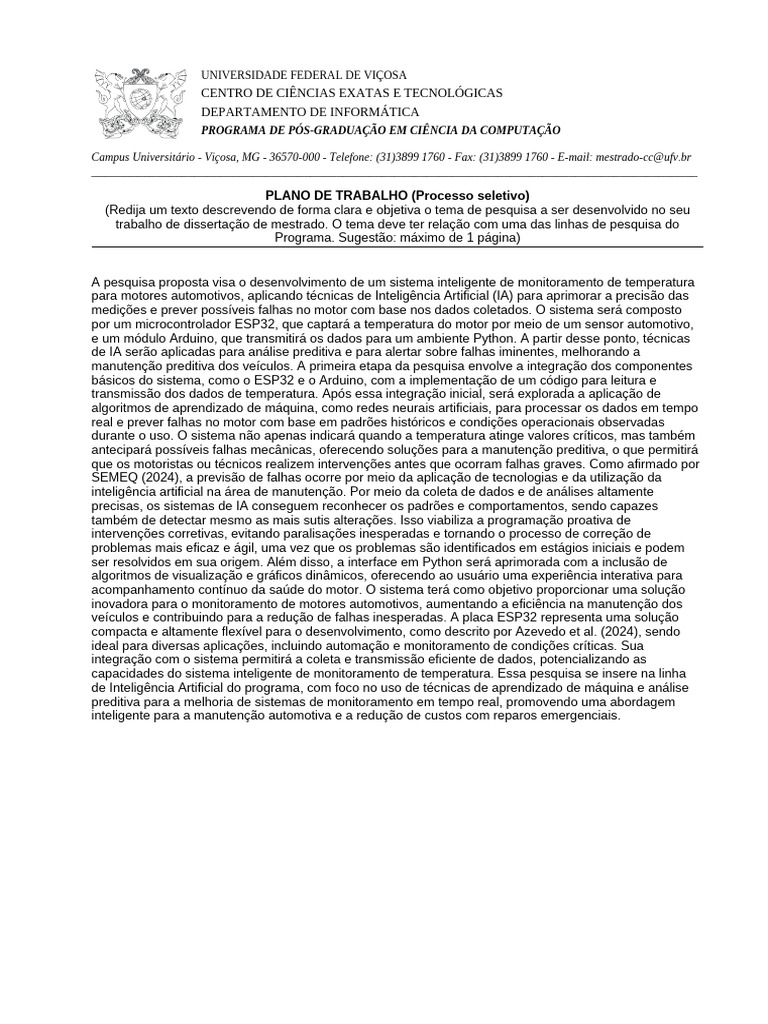 A pesquisa proposta visa o desenvolvimento de um sistema inteligente de monitoramento de temperatura