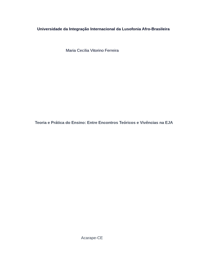 Teoria e Prática do Ensino: Entre Encontros Teóricos e Vivências na EJA