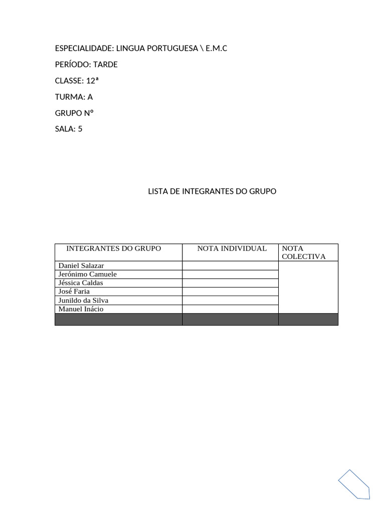 INTEGRANTES DO GRUPO NOTA INDIVIDUAL NOTA
