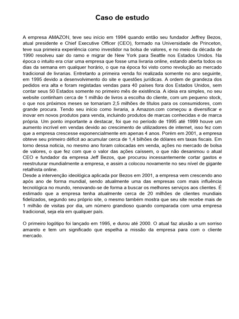A empresa AMAZON, teve seu início em 1994 quando então seu fundador Jeffrey Bezos,
