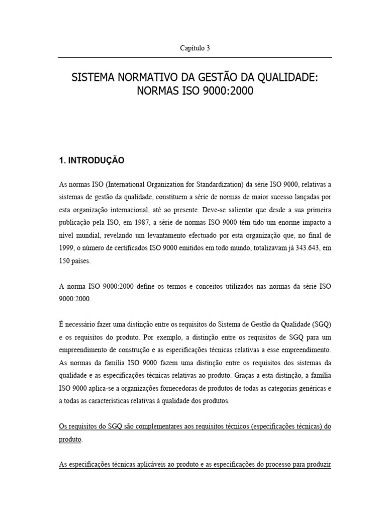 O quadro 3-1 lista os requisitos da norma ISO 9001:2000 para um SGQ.