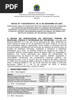 O Instituto de Ciências Exatas e Tecnologia torna pública a Homologação do resultado final, do Edital nº