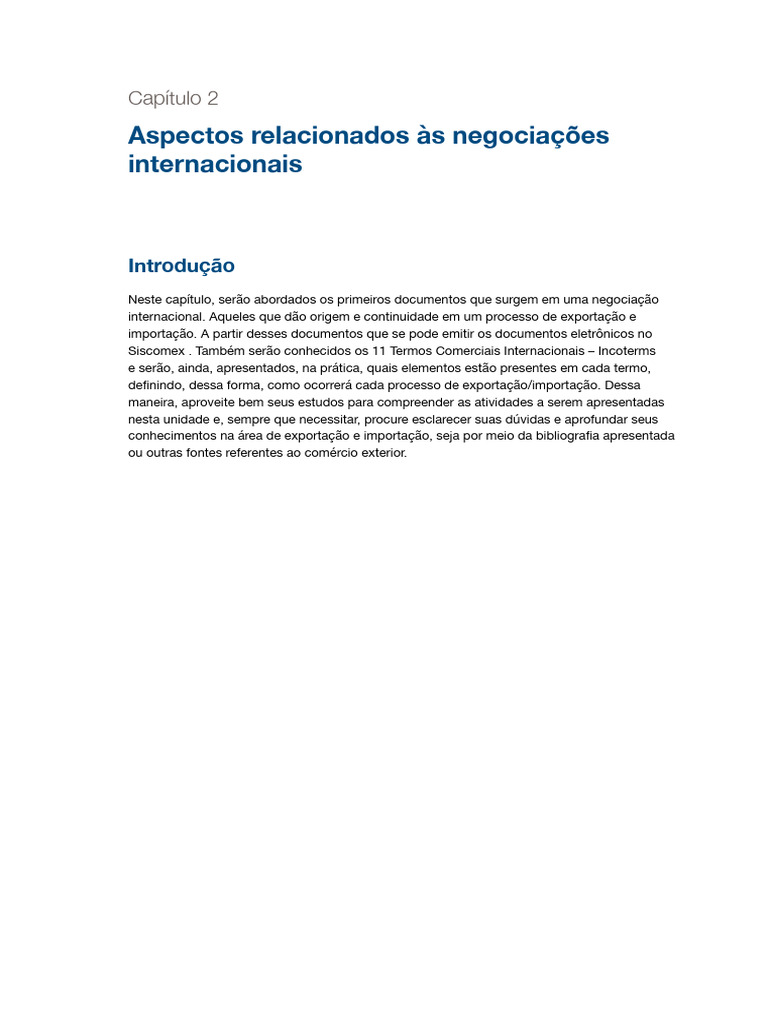 Neste capítulo, serão abordados os primeiros documentos que surgem em uma negociação
