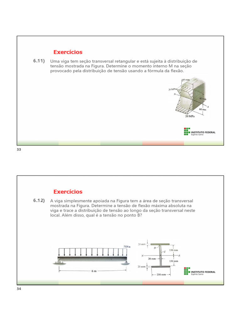 6.11) Uma viga tem seção transversal retangular e está sujeita à distribuição de