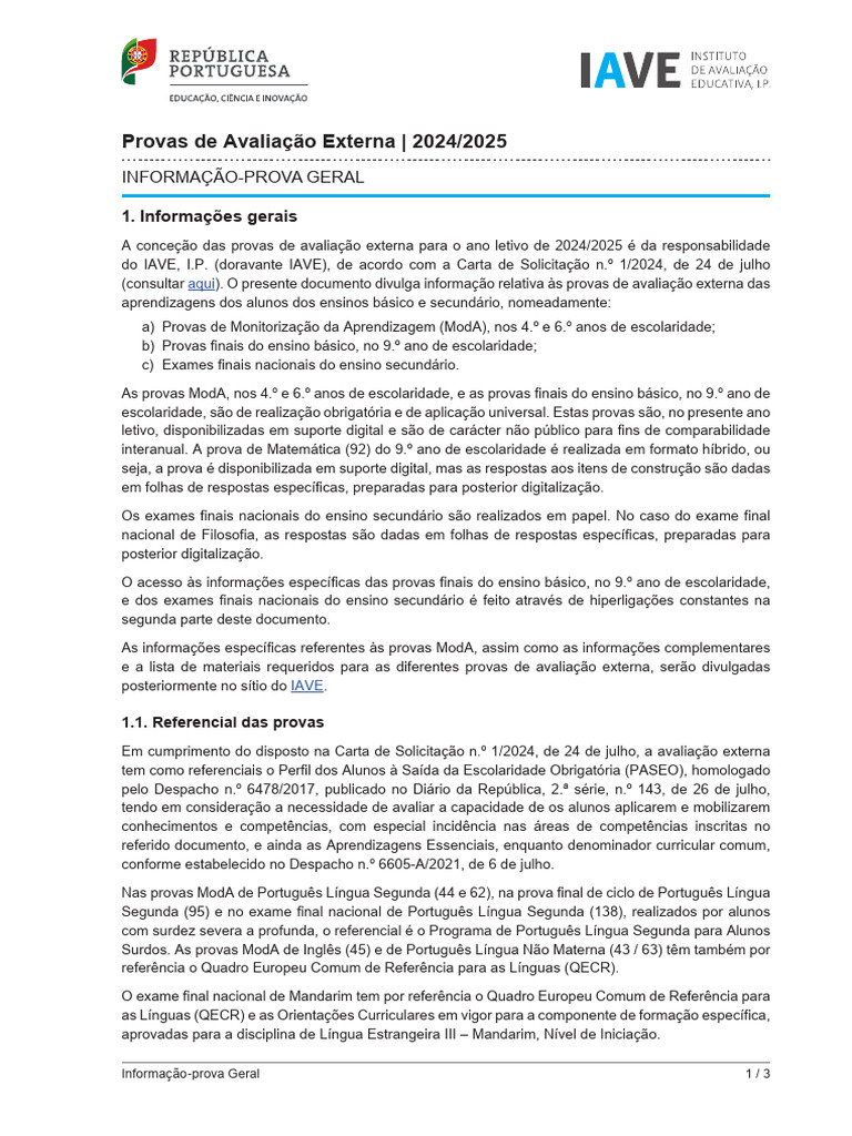 Provas de Avaliação Externa | 2024/2025
