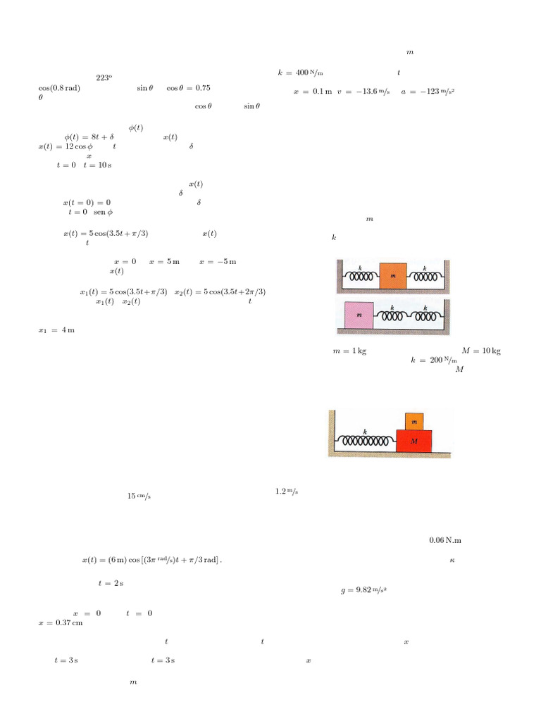 4 s; π/2 rad/s; 0.37 cm; 0.37 cos(πt/2); −0.58sen (πt/2); 0.58 cm/s; 0.91 cm/s2 ; 0; 0.58 cm/s 10. 1.6 kg 11. 5.6 Hz; 0.33 kg;