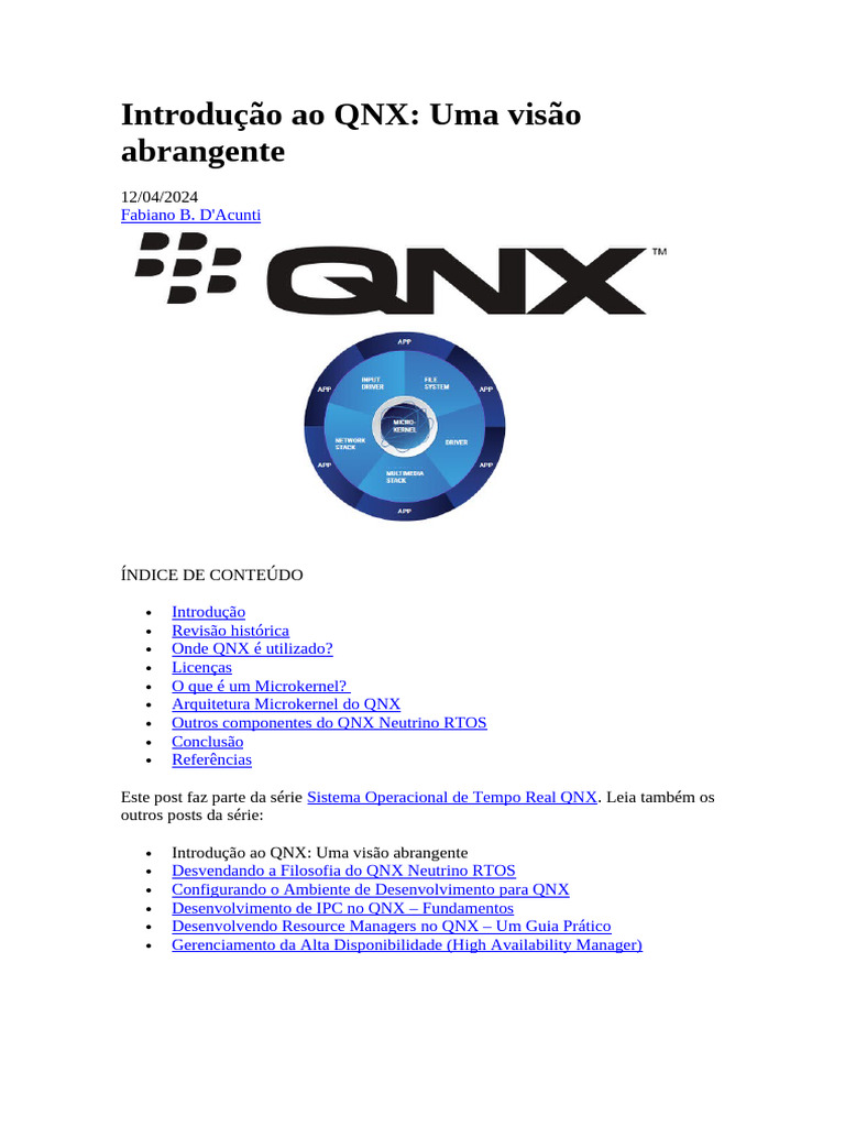 Neste artigo, entraremos na essência do Sistema Operacional de Tempo Real QNX,