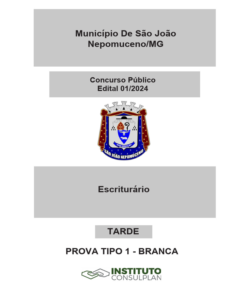 CONCURSO PÚBLICO – PREFEITURA MUNICIPAL DE SÃO JOÃO NEPOMUCENO/MG