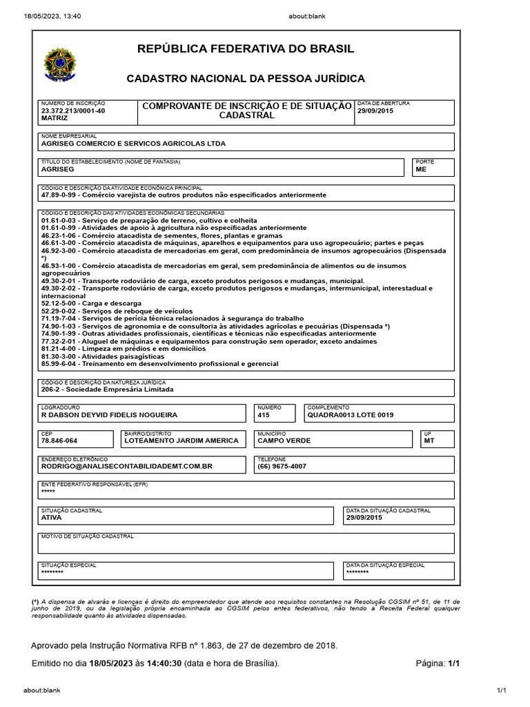 Emitido no dia 18/05/2023 às [Link] (data e hora de Brasília). Página: 1/1
