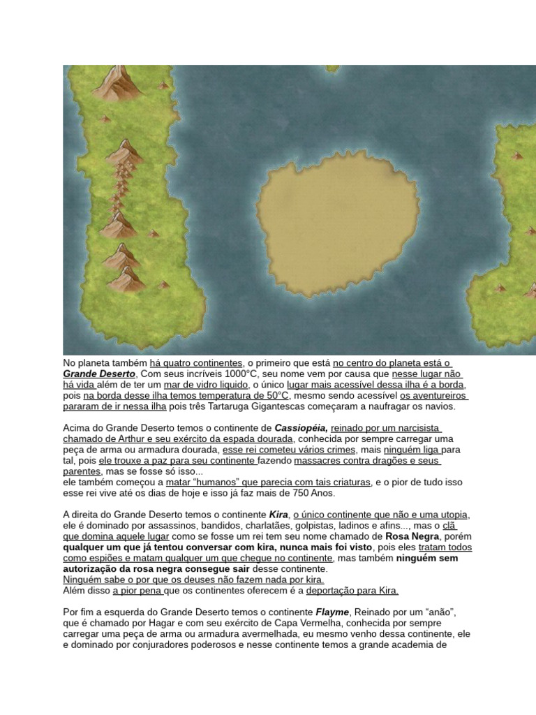 Por fim a esquerda do Grande Deserto temos o continente Flayme, Reinado por um “anão”,