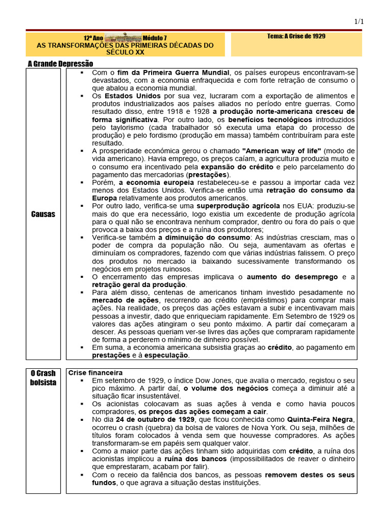 12º Ano Módulo 7 Tema: A Crise de 1929