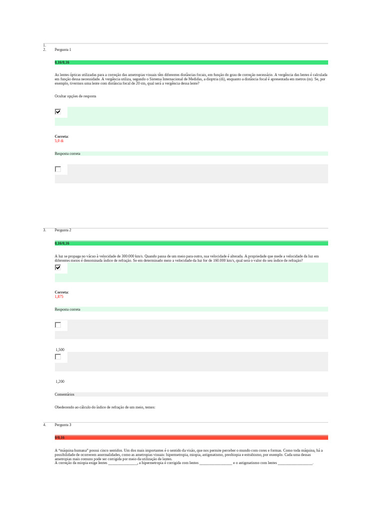 As lentes ópticas utilizadas para a correção das ametropias visuais têm diferentes distâncias focais, em função do grau de correção necessário. A vergência das lentes é calculada