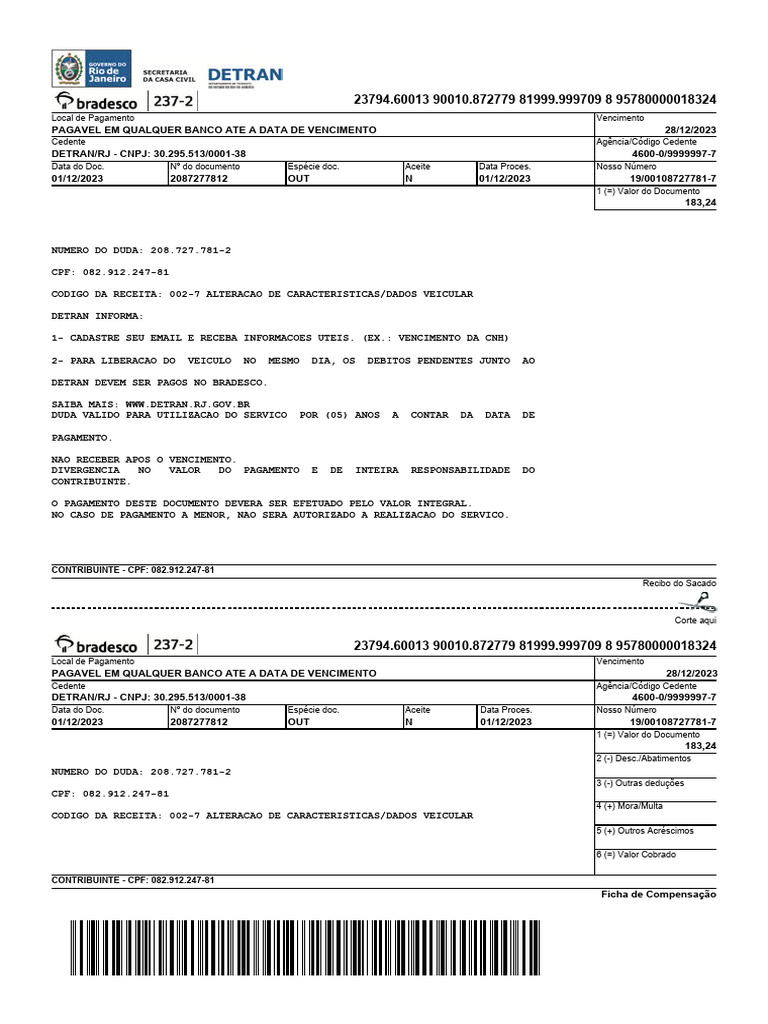 DETRAN DEVEM SER PAGOS NO BRADESCO.