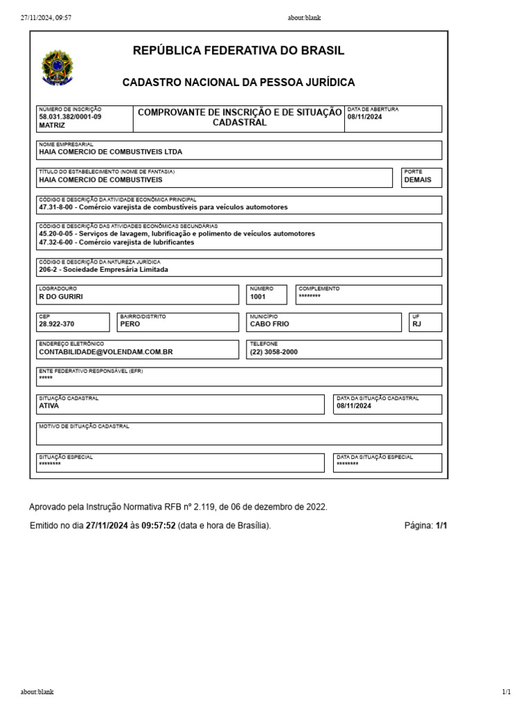 Emitido no dia 27/11/2024 às [Link] (data e hora de Brasília). Página: 1/1