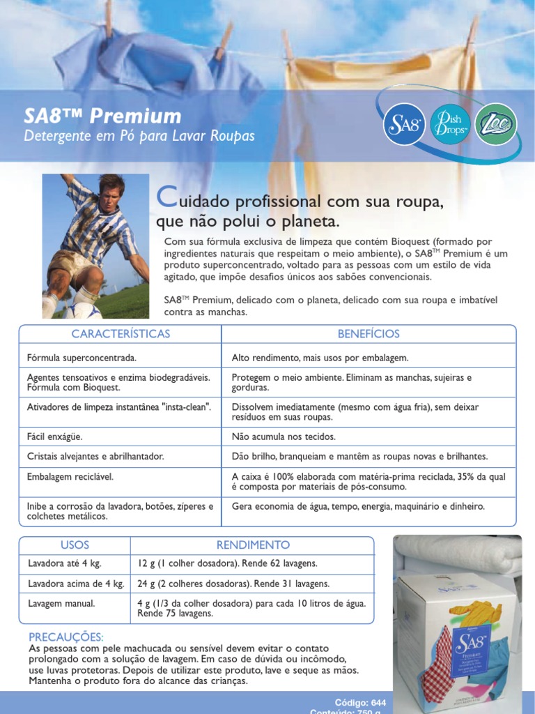 SA8TM Premium, delicado com o planeta, delicado com sua roupa e imbatível