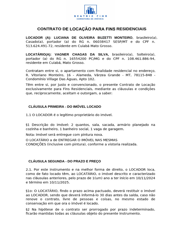 LUCIANA DE OLIVEIRA BUZETTI MONTEIRO (locador(a)