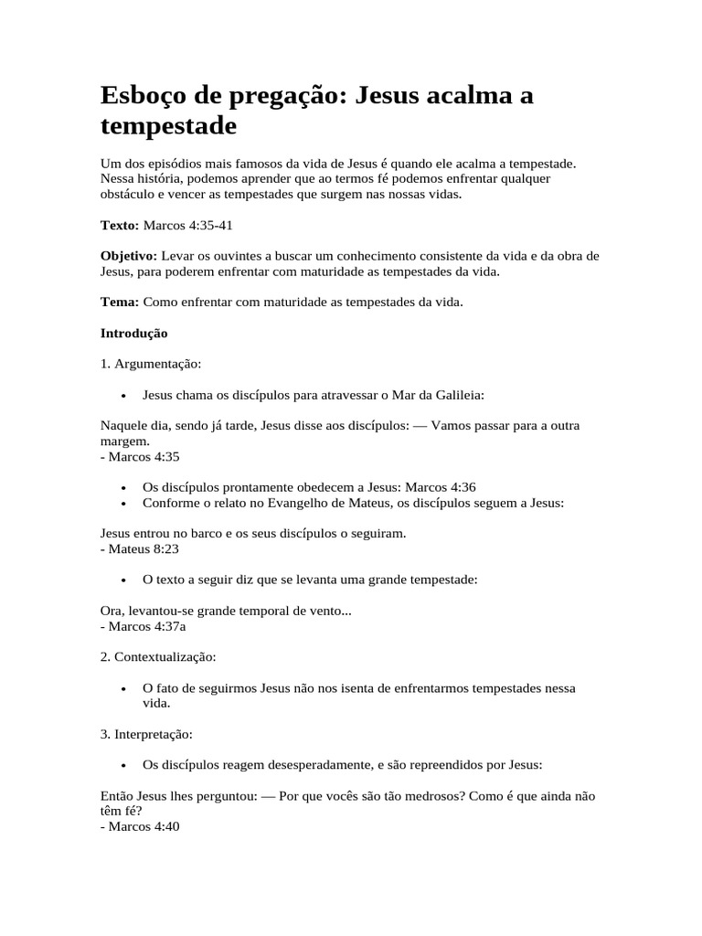Esboço de pregação: Jesus acalma a