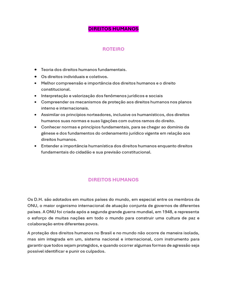 • Compreender os mecanismos de proteção aos direitos humanos nos planos
