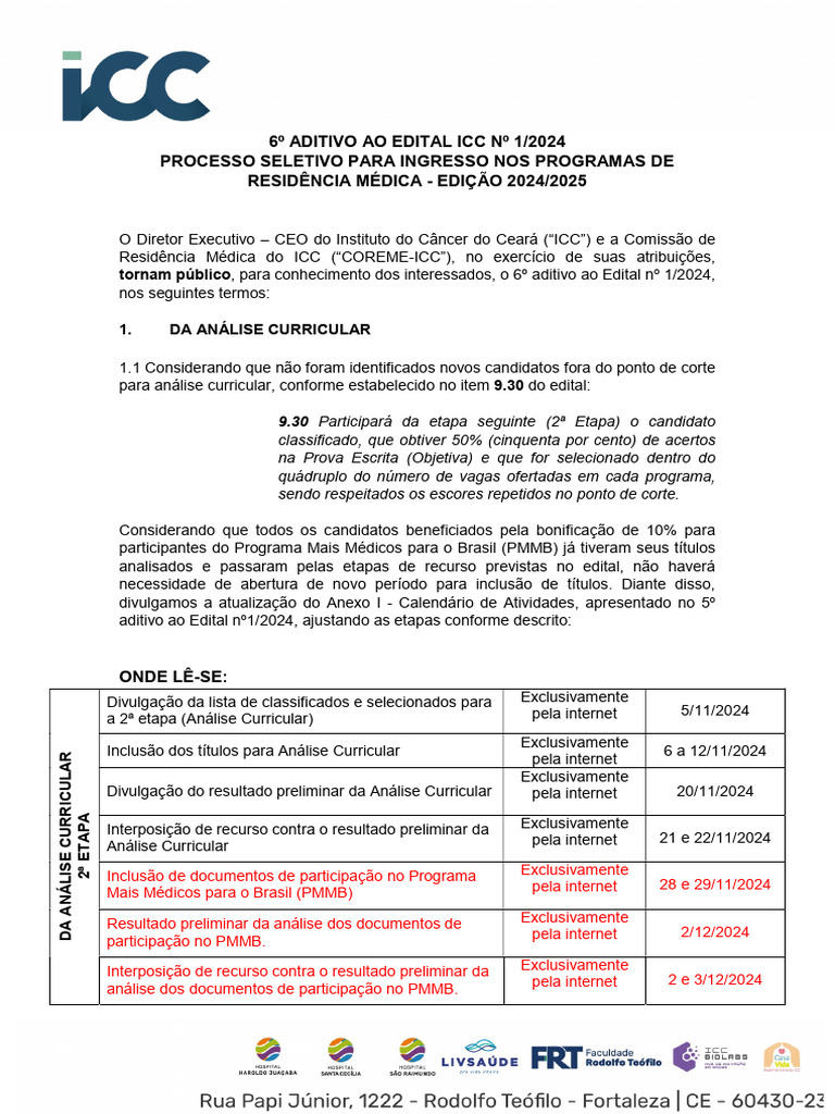 6º ADITIVO AO EDITAL ICC Nº 1/2024
