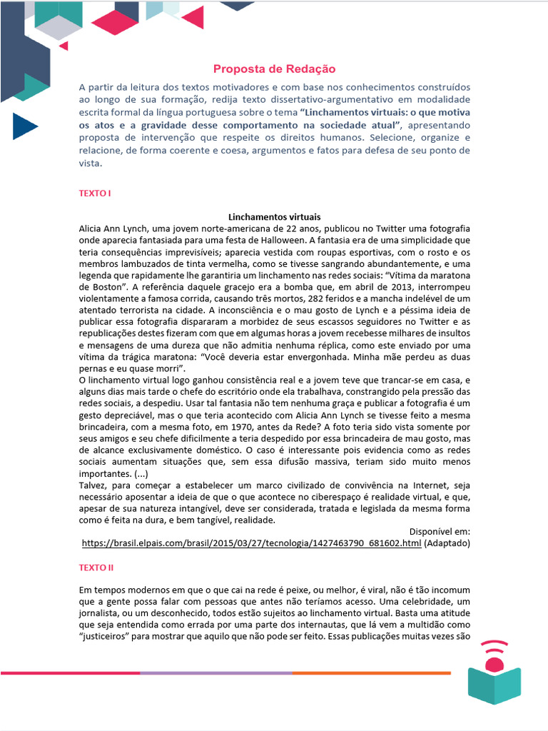 escrita formal da língua portuguesa sobre o tema “Linchamentos virtuais: o que motiva