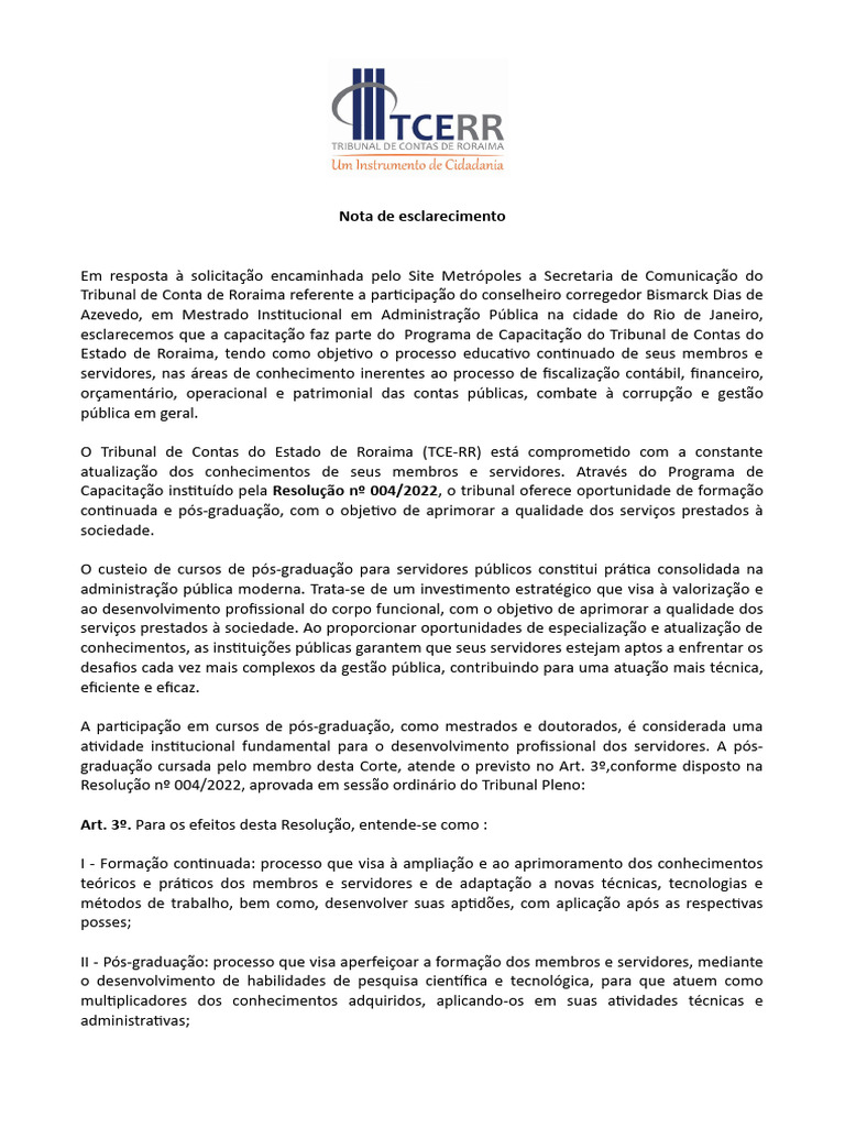 No âmbito do Tribunal de Contas de Roraima, a Lei Orgânica atribuiu à Escola de Contas a função
