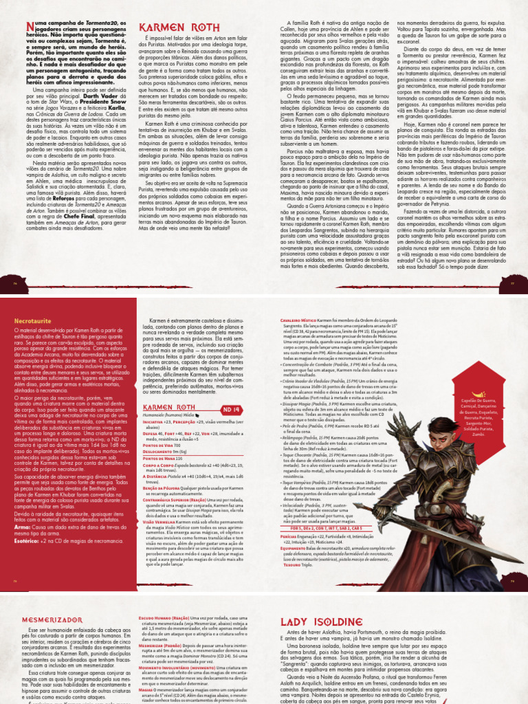 campanha militar em Svalas. quando vê uma magia ser conjurada, Karmen faz uma • Velocidade (Padrão, 3 PM, susten-